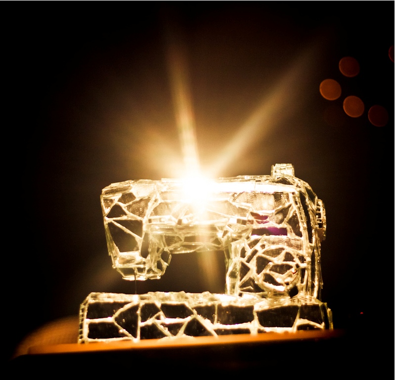 Luckily, L’Aire Libre was a less bewildering starting point. Five nights were given over to French indie label Kütu Folk. It’s based in Clermont-Ferrand, the city Le Monde declared the new capital of French rock in 2008. The newspaper reckoned there were 800 groups in the region. Kütu Folk – kütu is a pun on couture – was founded in 2006 with the aim of promoting folk acts from Clermont-Ferrand and the region. Early CDs were sandwiched between stitched-together sheets of paper. The label’s logo is a sewing machine. A mirror-encrusted one took center stage at L’Aire Libre (pictured left, photo by Gwendal Le Flem).