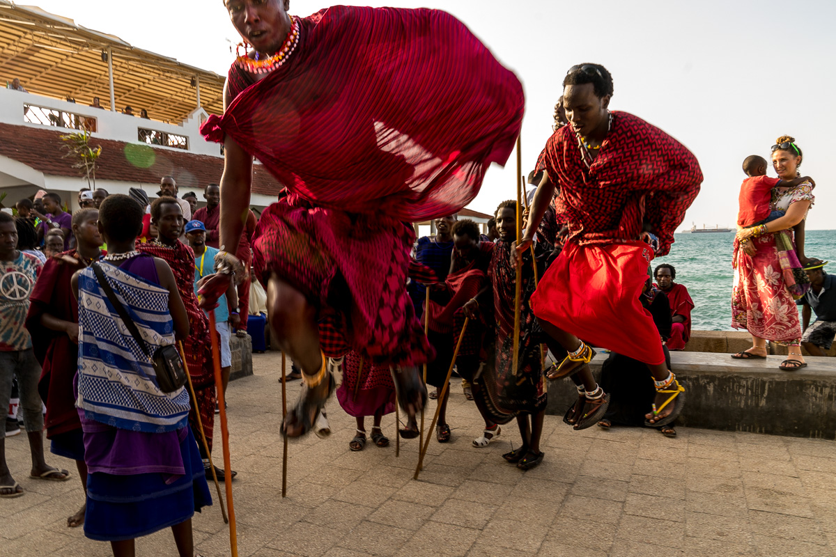 Some young Masai men are demonstrating their famed watutsi leaps by the sea wall (pictured below), encircled by captivated mzungu ('white person'). The Masai are a curious presence here, and in most of East Africa by all accounts. Their toughness and legendary fighting abilities make them sought-after as security guards in hotels, shops or private villas, but they also coin the wonder of tourists who ask for their photo, or western women for whom a brief liaison with one of these lithe and lanky warriors is a thrill not to be missed. Some Zanzibaris I speak to see the Masai as the epitome of tourism’s corrupting influence, but a local rapper called Ison Mistari tells me they have it just about right, because wherever they go, even as far as Europe, they retain their dress, their dances, their language, their culture. You won’t see a Masai in a ‘Keep Calm and Go Shopping’ T-shirt.