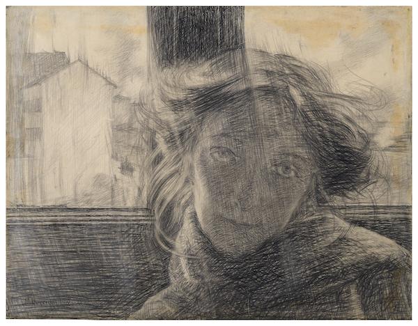 Tomaso Binga E id Erba (Alfabetiere Pop), 1976 © Collezione RamoTo think of these pieces merely as rejects is unrepresentative — but they do challenge preconceptions around what is valued in artists’ oeuvres. A striking, almost sentimental sketch of a woman against a window by Umberto Boccioni (Controluce, 1910) (pictured top) bears very little resemblance to the Futurist paintings for which he is known; nevertheless her expression is captured with idiosyncratic chiaroscuro and close attention to the informal incline of her head and snug fold of her scarf. The impression is of comfort and distance — her position is restful but her eyes are inscrutable. It is paired on the opposite wall with another portrait, Untitled, 1974 by Jannis Kounellis, possibly of a woman, scored into a mat of tempura, charcoal and glue. Again, the expression is intriguing, poised between melancholy and hope; again it is a step away from what is considered to be his main work.