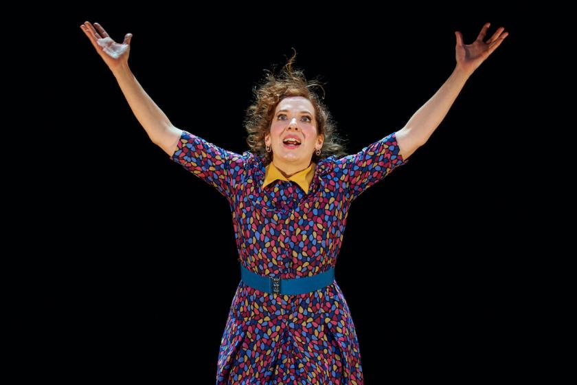 Parkinson – a familiar face and voice from television's Humans and Defending the Guilty – is excellent. She travels from querulous alienation to a manic desperation with laughs quickly stifled by gulps of disquiet. Viv comes across as masochistic and increasingly lacking in self-esteem. Occasionally compelling, Featherstone's production, designed by Chloe Lamford, features a moving carousel and a foot that becomes ever-more bloody. There are lovingly still stage pictures and energetic moments of song and dance. Parkinson is well supported by Tom Kanji (Kenny/Curtain) and Kayla Meikle (Elaine) (pictured above with Parkinson) and the Child role is shared by Archer Brandon and Beatrice White (on press night, Brandon made his stage debut). Yet, however vivid, this is yet another rather slender play that would be better as one half of a double bill rather than as the main event.