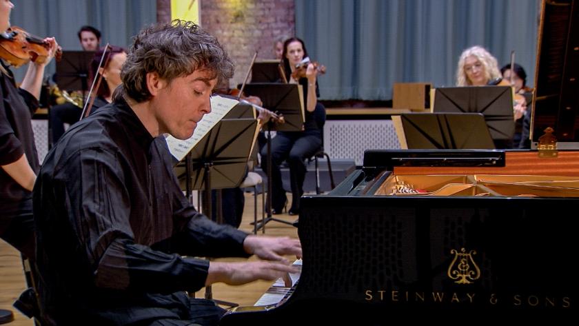 For the newest performance of their part-postponed “Winter Season” on film, the Hallé return to their rehearsal and performance centre in Ancoats, and with the help of piano soloist-director Paul Lewis and guest leader-director Eva Thórarinsdóttir offer a display of the capability of their orchestra members as chamber musicians.