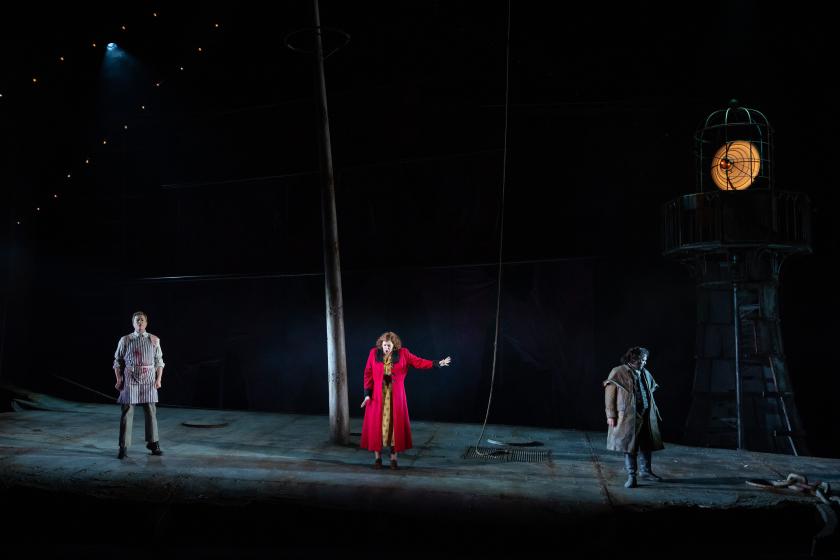 Until, that is, what should be the still, transformative centre of the opera, the starstruck duet for the doomed man and his potential redeemer. At the one point where Hewer could really just let the characters be, she has the dutiful girl carry on slicing up things at a table (Allen pictured above with Shanahan and Creswell). Apart from the point that the Dutchman moves to help her, which again takes the Decent Bloke line, the magic of this great duet is sabotaged. The visuals are strong enough for the animation of the Dutchman's ship in the next act – you really need the luxury of a double chorus; the ghost sailors sound pre-recorded, though they're actually the New Dublin Voices – but we're back to stand-and-deliver for the final tussle. The curtain is as naff as the dumb-show in the Overture. So, despite stalwart singing, and some bold playing from the orchestra under Sheil (trombones especially), this is the first INO production I've seen that simply doesn't fly.