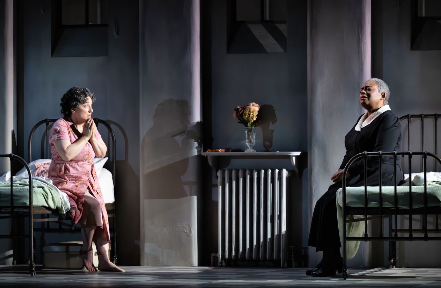 Before we deal with those, let’s celebrate another Irish soprano in English National Opera’s most gripping offering of the year. We’ve sorely underrated Ailish Tynan – a top Lieder singer, yes, but how often have we seen her in opera, let alone as totally demanding a part as Britten’s Governess in The Turn of the Screw (pictured below by Bill Knight with Gweneth Ann Rand as housekeeper Mrs Grose)? Operagoers were divided about Isabella Bywater‘s production, but it made both original and authentic sense bearing in mind that the James novella has a present take on a possibly unreliable narrator of the past. We missed Alexandra Coghlan’s writing very much until September, but once she’d swung back into action, this was her top choice as well as one of mine.
