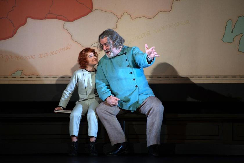 Stentorian assurance comes from the only native Russian singer in the cast, Boris Pinkhasovich as clerk of the Boyars, and refreshed delight from the reined-in knockabout of vagabond monks Varlaam and Missail in the Falstaffian tavern scene; it never made me laugh until I saw the way John Tomlinson's easy way with the song about Kazan was accompanied by Harry Nicoll's sidekick on the spoons.