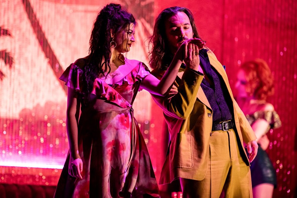 Kostas Smoriginas’s Escamillo is a shabby spiv in a lime-green suit (pictured above with Akhmetshina), no charismatic holder of the stage. Michieletto doesn't seem much interested in choreographing the fight he's goaded to in Act Three – no wonder Bizet's interesting extra music in which the toreador worsts the bandit and spares him is cut, as there's just a bit of shoddy matador-bull play. Call in a fight director! Michieletto's notion that Carmen then comes close to José in the moments before he leaves for his village is pure sentimentality, belied by his violent, desperate music.