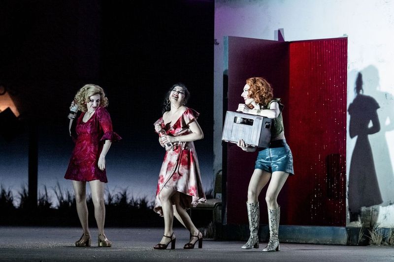 The smaller roles are all well taken. Royal Opera Jette Parker Young Artists of huge promise Sarah Dufresne and Gabrielė Kupšytė are as vivid a pair of frivolous friends as you’re likely to see or hear (pictured above with Akhmetshina centre).The tenet that in the nimble Opéra-Comique numbers it’s always good to have a Frenchman or two with you is borne out perfectly by Vincent Ordonneau as Remendado and Pierre Doyen as Dancaïre. Despite the splendidly sung Quintet, Act 2 doesn’t really spark, and surely it needs a choreographer (we got it, and how, from Otto Pichler for Kosky).