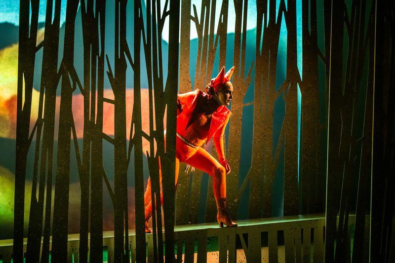 One of the gaps in Sophie Motley's hit-and-miss production is when Harašta takes aim at an overconfident vixen. In the libretto, he fails and only accidentally hits her, concealed in a cloud of feathers, with another shot. Here she's standing there for about a minute, crying out "shoot me", so he does. But then the pithiniess of Neil O'Driscoll's projection design kicks in, with more bloodsplatter. That's amusingly applied to the unlucky hens of the Forester's coop in Scene 2 - usually the Vixen's picking them off is unclear - and O'Driscoll does a splendid stream when the Vixen sprays the Badger's lair to take it for her own. The silhouettes have the naive charm of Hans Christian Andersen's woodcuts; Sarah Jane Shiels' lighting also conjures the necessary seasons. It's also a joy to hear the text in pithy English translation - good craic, as Motley puts in - with a few lively tweaks applied to the words of Robert T. Jones and Yveta Synek Graff. And yes, the audience did laugh a lot.