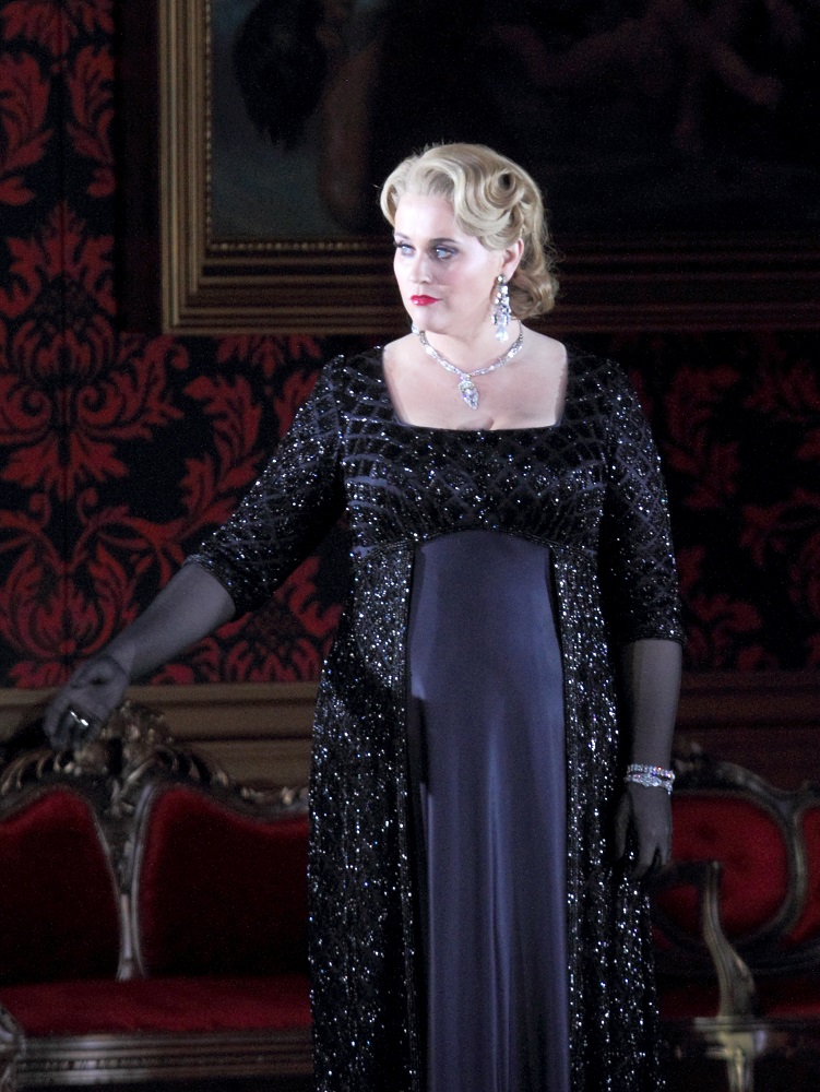 Yet Willis-Sørensen (pictured right in Act 3) certainly doesn’t milk it or strike any of Fleming’s more artificial notes, even if her golden middle range evokes a more powerful version of the Renée sound. The lower register is even richer and organically well connected to the rest, ample compensation for any lack of the conversational lightness at which Fleming excels. Willis-Sørensen gives full value to every note, not easy given Nelsons’ demands, and she’s exceptionally well matched to Stéphany’s equally vibrant Octavian.