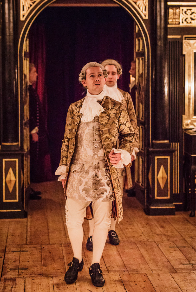 This is a historical drama, framed in the historical authenticity of the Sam Wanamaker Playhouse, but there’s nothing prim or fusty about it. Van Kampen’s language is contemporary, sparking comedy in the friction between period setting and linguistic anachronisms; everyone says “fuck” a lot, and – in the best English tradition of obscenity – it’s very funny.