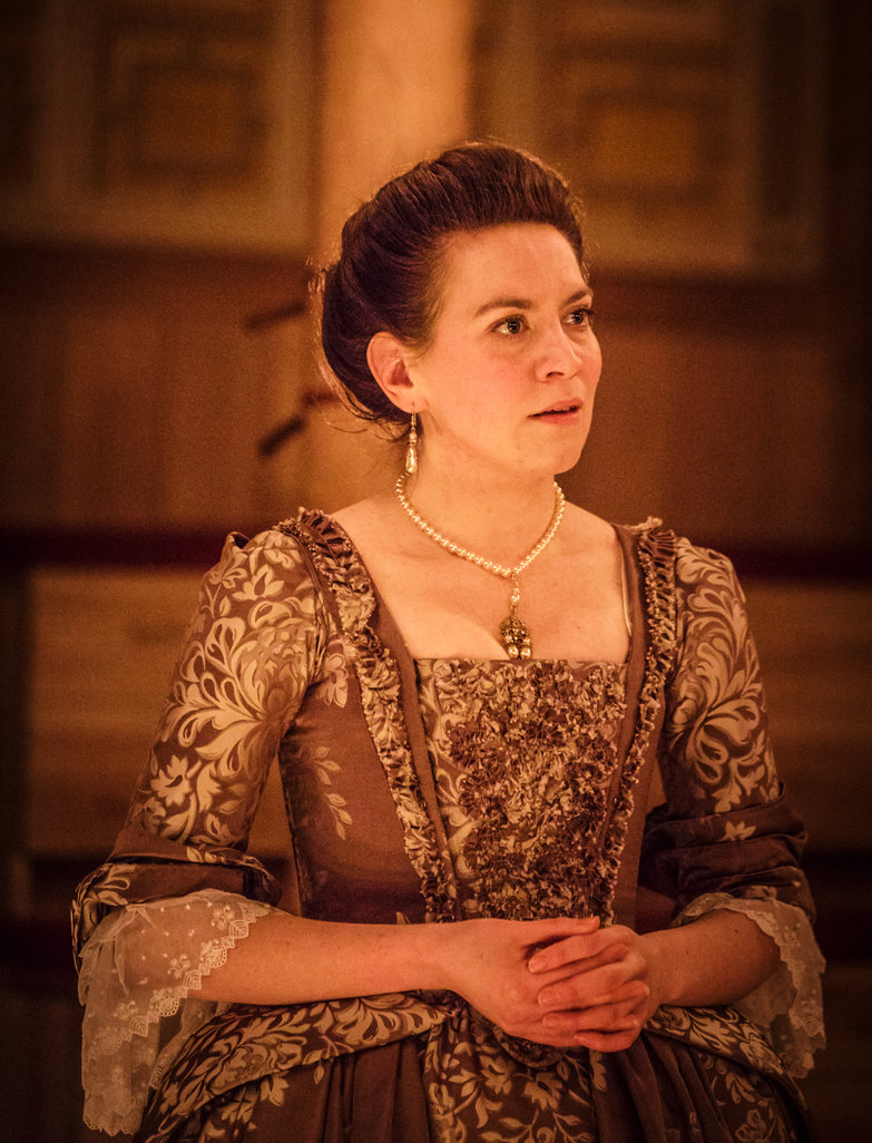 Only Queen Isabella (Melody Grove, pictured left) seems at odds in van Kampen’s handling, too often reduced to playing the straight (wo)man to Rylance’s historical sitcom, denied much by way of inner life until almost the end. Even then it’s only as the central party in the inevitable love-triangle. It’s a small quibble in so accomplished and attractive a piece of theatre, however.