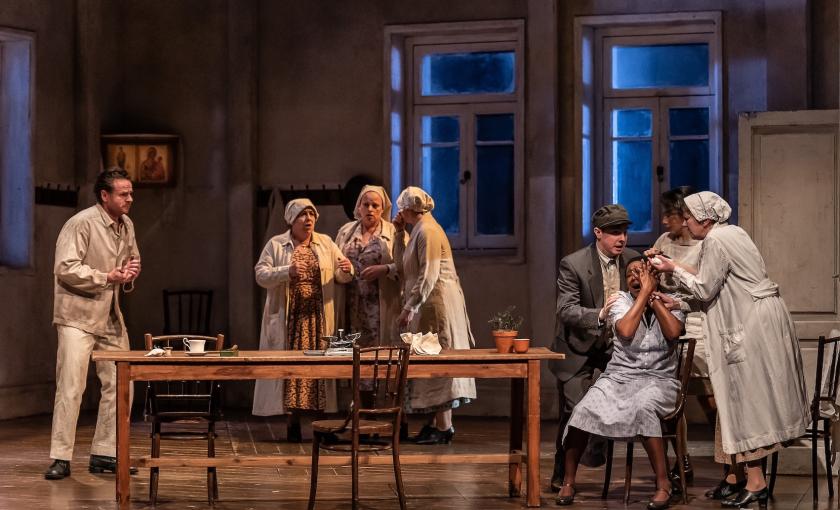 But this is generally an excellent cast, with Rhodri Prys Jones finding something almost likeable in the deeply unattractive character of Števa, and a whole series of sharp vignettes, including Sian Meinir's downtrodden Grandmother Buryja, Sion Goronwy’s seven-foot high, three-foot wide Mayor, and Francesca Saracino’s ghastly Karolka, just Števa’s type but not if he’s saddled with a dead bastard, thank you very much. The author of the original play, Gabriela Preissova, had lived among the sort of people she wrote about, and something of her vivid realism comes out also in Janáček’s minor characters, which may be one reason why British companies, often so strong in depth, play him so well.