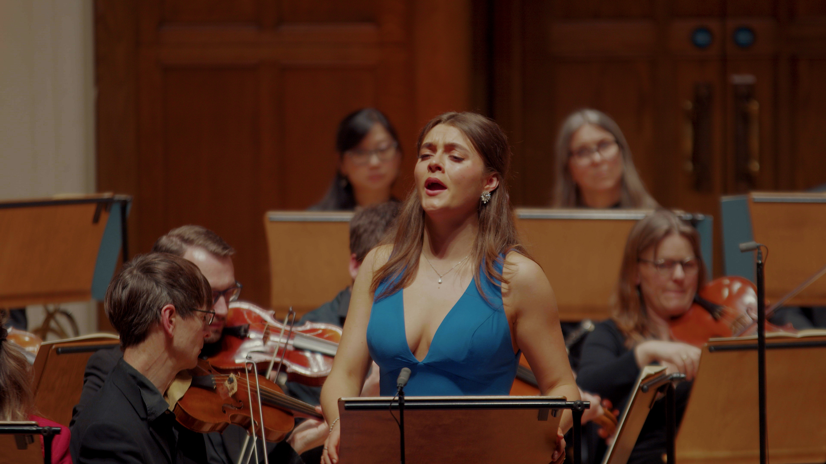 In a way, a concert staging – with the cast of seven singers lined up in front of the period-instrument orchestra (pictured below) – simplifies matters by bringing the music to the fore. Freed of the need to visualise (say) the lurching Act Two transition from estate gardens to a craggy forested mountainside, we can sit back and enjoy Mozart flexing his melodic muscles, and (above all) learning to craft sophisticated vocal, and emotional, dialogue, from rapt duets to a pair of intricate sextets.