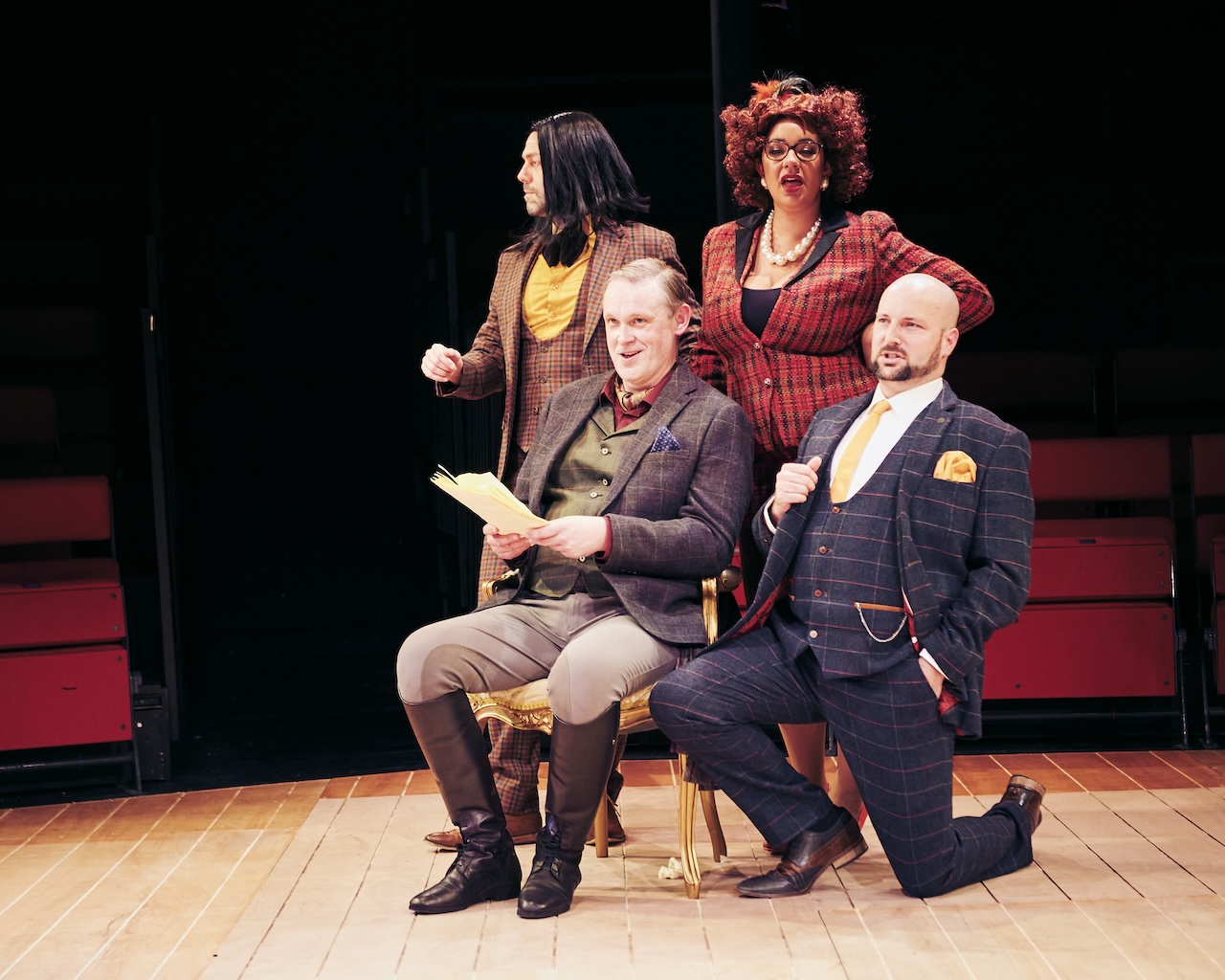 The singers are all superbly cast. Not operatic stars, but all of them of a very high standard, no weak link here. They can certainly move and act as well – though some, like Lorena Paz Nieto (Susanna, pictured left) stand out – she's particularly gifted when it comes to navigating a stage with a mixture of grace and contagious fun. Galina Averina (pictured below, right) conjures the resigned melancholia of Countess Almaviva beautifully, a full rounded soprano which loses nothing of its texture when she reaches for the higher register or greater volume. Lorena Paz Nieto has more of a soubrette’s voice, perfect for Susanna, with full command of the genre. Philip Smith (Count Almaviva, pictured above, with Malachy Frame, Ian Beadle, Jonathan Cooke) evokes his role’s mix of febrile insecurity and macho boasting with nuance. He, along with Figaro (Malachy Frame) has a fine voice, never a hint of strain, and visible pleasure in giving voice to emotionally rich music.
