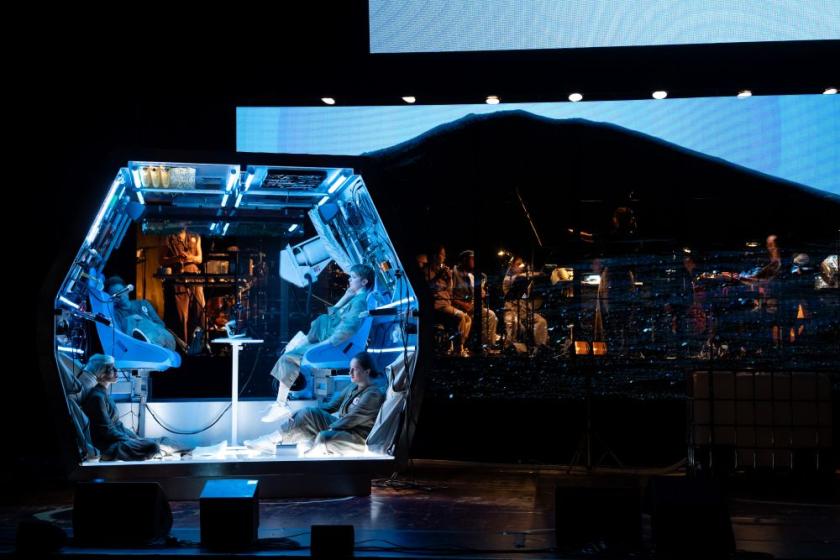 If you witnessed Walshe's The Site of an Investigation at the 2022 Proms, you'll know what to expect. Maybe, though, it will date as quickly as Jerry Springer: The Opera. Yes, the kind of democracy-free capitalism promised by the new "owner" of Mars, a prolific babyfather (Musk, of course), will be a theme until we finish ourselves off, but Mark O'Connell's libretto veers between the would-be reflective (clichés as sung about why the need to explore space and not ourselves), the downright banal and the humorous (some good ideas, like the notion that one of the spacewomen left behind the USB stick with the entire Criterion Collection of great movies at home, so endless reruns of The Real Housewives of Beverly Hills are the staple fare: cue a fun sequence).