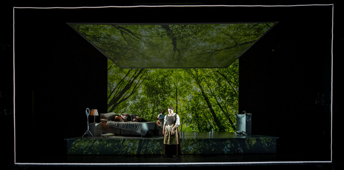 Sparrow is an engaging heroine – sweet-voiced and youthful, passionate without being prissy – and well supported by her contrasting coven-members Nina Korbe and Kathleen Nic Dhiarmada. Johns (a powerful Composer earlier in the Prologue to Ariadne auf Naxos) finds subtle gradations of texture in the more contained role of Jane, helped by Graham’s careful direction and Hayley Egan’s evocative video designs, the open up closed spaces into whole worlds, both digital and natural.