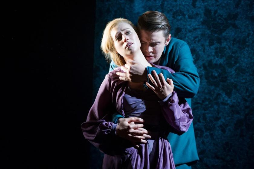 The opposing points of the love triangle – Stephan Loges’s Golaud (pictured right) and Jonathan McGovern’s Pelléas – are both strong in their magnetic tug on Hurrell’s Mélisande. McGovern's boyish appearance is matched by an immensely attractive, tenorial baritone that opens up at its top end with unexpected warmth. His dynamic with the older, more rooted Loges – sternly beautiful in his anger – is natural and unforced, only equalled for charge by the interactions between Loges and Lauren Zolezzi’s Yniold – chamingly unaffected and sweetly sung. Only Helen Johnson’s Geneviève jars, with some linguistic awkwardnesses.