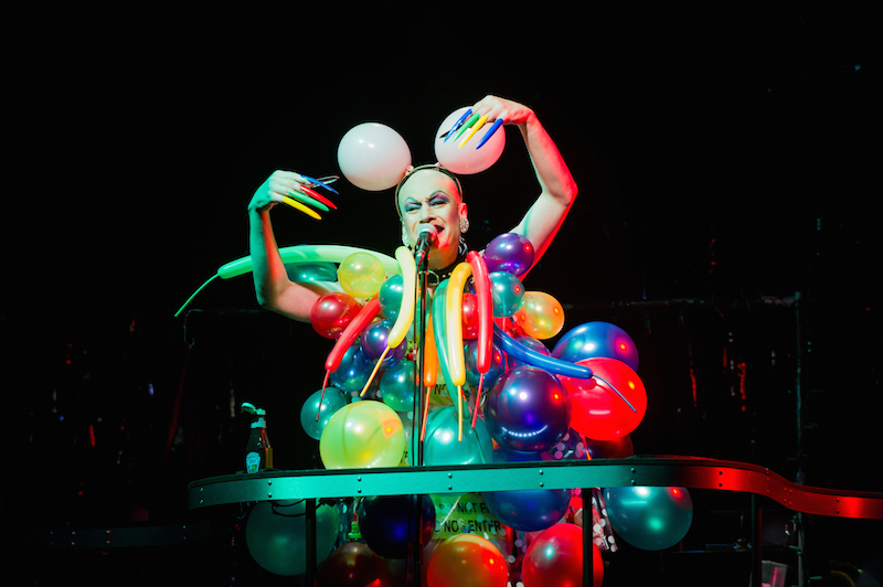 The singing was very good from all four of the cast, especially baritone Steven Page (pictured above). His drag queen, often seen in backstage dressing gown, was gaudy in the limelight and catty out of it. The aria in which he appeared in, and gradually destroyed, a dress of coloured balloons was very entertaining.