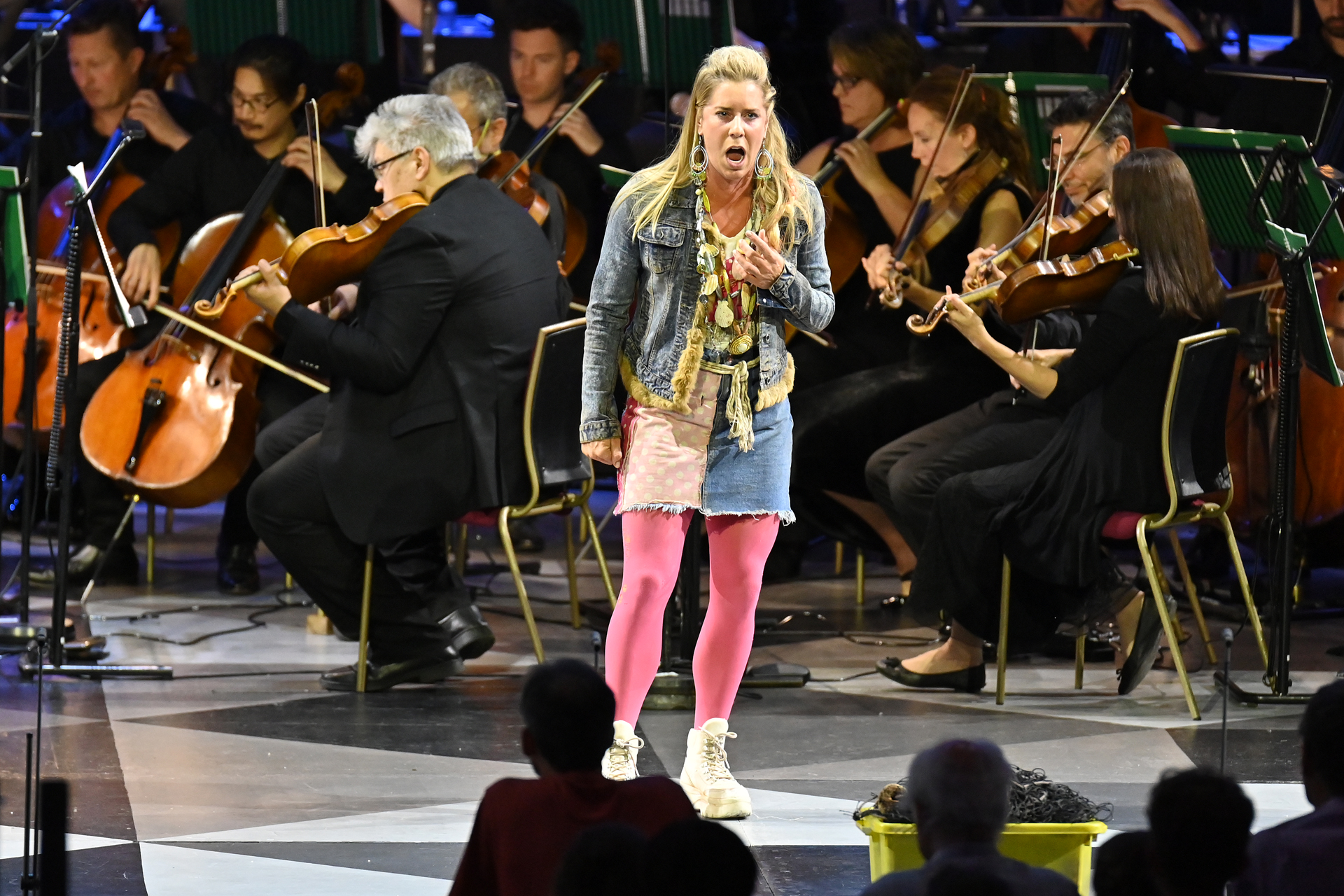 However, our 18th-century Cornish updates of Tristan and Isolde (an allusion that Smyth’s orchestration lavishly pursues) slightly pale before the true wrecker on these cliffs: Laurent Fagan’s show-stealing Avis (pictured below). Daughter of the lighthouse-keeper Laurent – James Rutherford, at times almost as scarily booming as Pasko himself – Avis loves Marc; his confession that he loves another prompts one of the opera’s finest stretches of genuine musical dialogue. Weirdly, Smyth gives Avis some charming and tuneful Carmen-ish stretches: hardly very Cornish, but attractive all the same. Clad like some Little Britain-style trailer tramp, complete with pink leggings, Fagan relishes all the mischief and malice of her role, with some bravura high-note excursions, and even a high-camp rat-killing sequence that almost veers into full-blown Mad Scene territory. At times she threatened to eclipse the swirling solemnity of the music, and acting, around her.