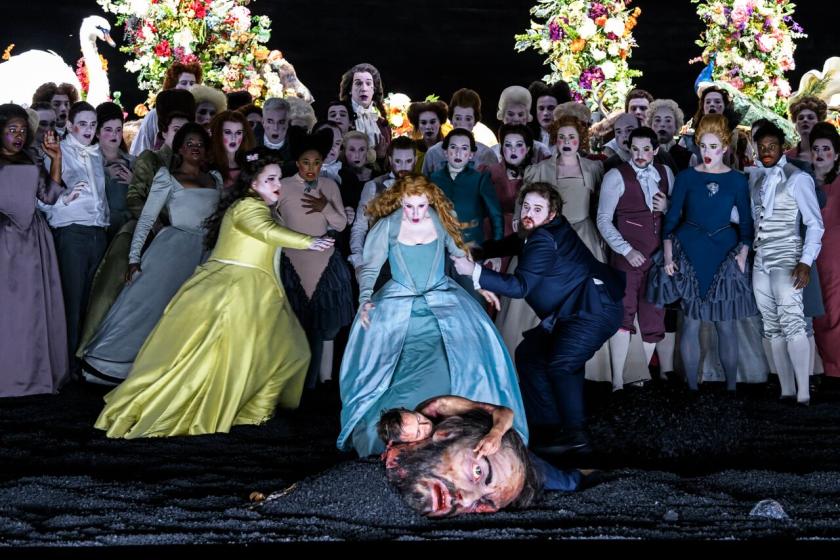 What remarkable music-theatre Handel makes this, in any case. The quickfire succession of shorter arias in dramatic sequence is electrifyingly supported by Laurence Cummings and an Orchestra of the Age of Enlightenment expanded to unusual Handelian proportions (if you didn't see the production first time round, there's one delicious surprise in the organ-concerto dimension). And the choruses blister, as one would expect from the usual crack band of young soloists-of-the-future that has always been a Glyndebourne hallmark (pictured below; other country houses are happily following suit these days, with rich pickings from the music colleges). There can't have been a more rewarding production for them, nor one in which they have to work harder. As in the Royal Opera Carmen, they move and occasionally dance together with the six brilliant dancers in Otto Pichler's trademark choreography – high-quality camp until the sudden seriousness at the start of Part II, one routine you won't have seen in a Kosky production before. And they bring Charles Jennens's superb texts on envy to excoriating life.