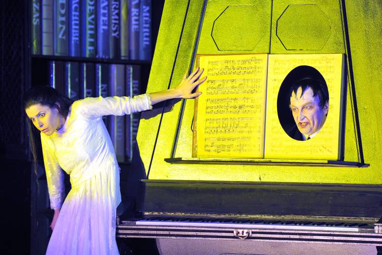 The curtain rises on Hoffmann himself (Barry Banks), alone and struggling to write. His roar of frustration as he hurls yet another sheet of paper aside becomes the lowering orchestral opening, and as orchestral colour and pace gather we find ourselves abandoning the 19th-century world of the pub for an altogether more free-form sequence of worlds for the stories of Hoffmann’s three beloveds – Fifties kitsch for Olympia (“the little girl”), 19th-century Gothic for Antonia (“the artist”) and contemporary pop-art for Giulietta (“the reckless beauty”). Anchoring these adventures are Cadle’s designs, which each inhabit the same architectural space, reimagining the fixtures with dextrous variation.