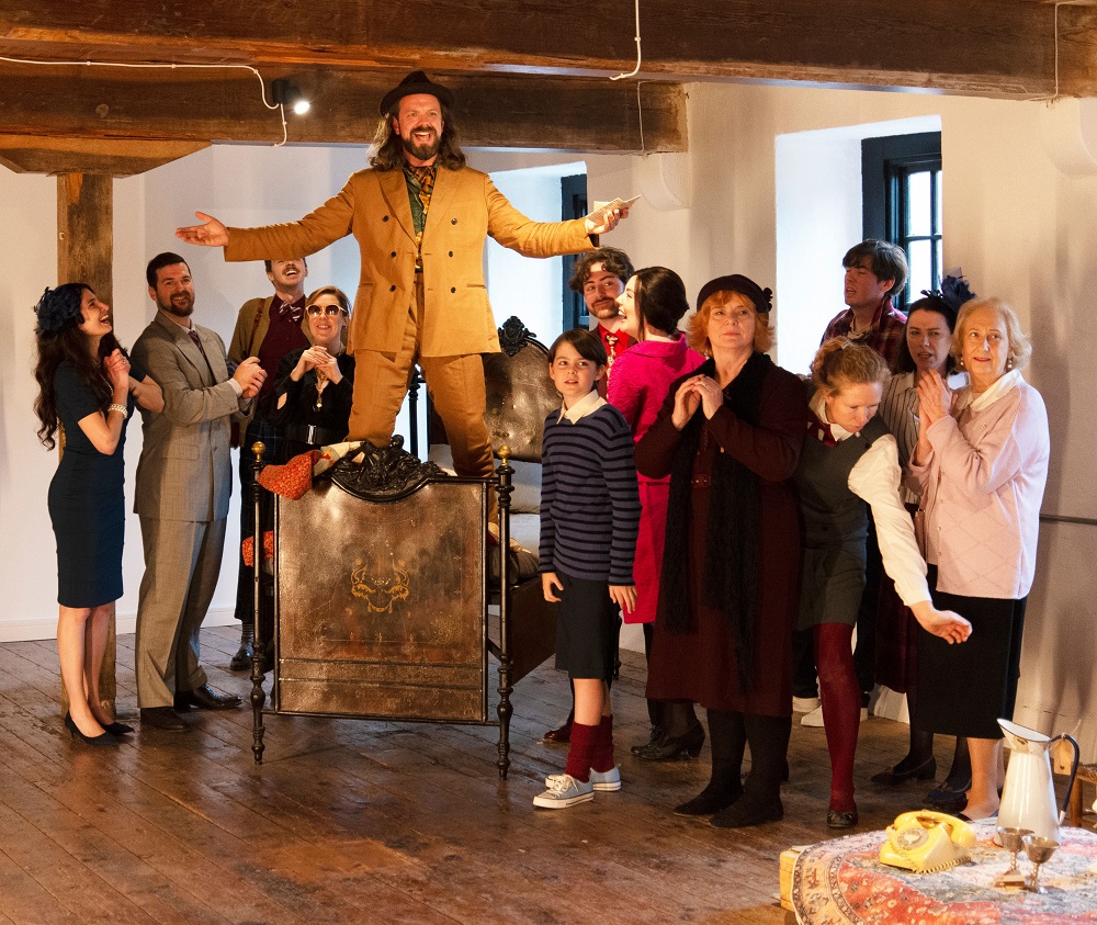 The locals did their stuff brilliantly, but there was no stinting on first-rate professional singers led by Rory Musgrave as the cunning peasant Schicchi (pictured above centre) who turns up with his daughter Lauretta (Federica Raja) and helps the desperate relatives out, more as it turns out to his own advantage than theirs. Prendiville and Raja sang their ariettas to perfection, and actor Peter McCanley steered us expertly from ground floor rooms to upstairs as the three-piece ensemble (clarinettist Seamus Whiley, cellist Adriam Mantu and pianist Luca Capoferri) revolved minimalist-style around connecting phrases.