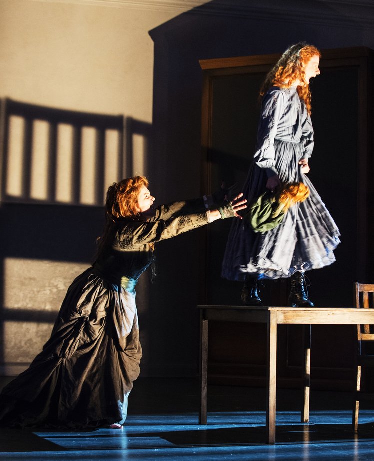 Things get rather more direct with Peter Quint (Brenden Gunnell) and Miss Jessel (Elin Pitchard), who leave little doubt of their designs on the children. Travers’ flexible set allows them to materialise with discomfiting suddenness, turning the screw just that little tighter on this operatic ghost story. Here, Quint’s red hair and that of both children proclaims final allegiances before we begin, setting them apart, marking them.