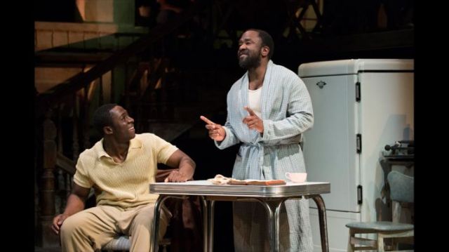 Written with a naturalistic eloquence and passion that prefigures Lorraine Hansberry's A Raisin in the Sun and August Wilson's epic cycle of African-American plays spanning the entire 20th century, Baldwin's play balances Sister Margaret's faltering religiosity with the story of her budding jazz musician son, David (Eric Kofi Abrefa, pictured alongside Msamati as his father), soon to fly the coop. (The role is surely an authorial self-portrait.) Personal battles, both petty and profound, are seen to rage, none more wrenching than David's separation from home, hearth, and church.