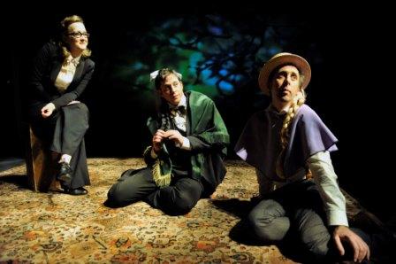 Doyle’s story is presented here as an illustrated lecture by PhD student Jennifer McGreary (Gabriel Quigley), aided by two hapless hired actors, Javier (Javier Marzan) and John (John Nicholson). It’s a slightly stodgy device, but wittily realised, enabling the play to leap back and forth between the past and present, the real and imagined, and allowing Jennifer to converse with Conan Doyle, as well as some choice Sherlock Holmes cases to be brought hammily to life. Woven in between is a farcical, fictionalised account of the inner workings and internal tensions of the theatre company itself, fresh from a 52-date Highland tour which has clearly taken its toll. Often, one scenario elides into the other, as when a table-top tussle between Moriarty and Holmes on Reichenbach Falls rapidly descends into a battle between John and Javier for the heart – and a few other bits – of Jennifer.