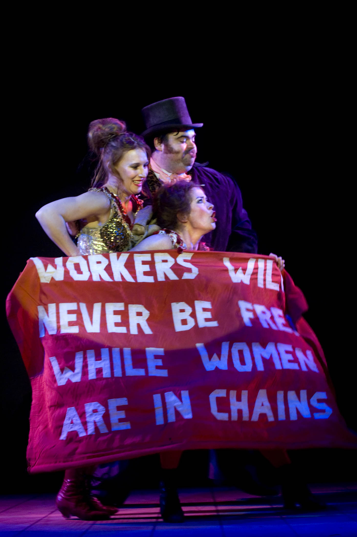 A two-minute walk from the garish delights of 21st-century Leeds, and it feels as if you’ve stepped back in time. Which is the point. Big Society!’s writer Boff Whalley invites us to return to 1910, an age when “the country was governed by ex-public schoolboys, a country still in the thrall of monarchy and nobility: a country run by the banks, overseen by a cabinet of millionaires”. The audience is greeted raucously as the show starts, welcomed “to an age of buggery, thuggery and skulduggery”. Whalley and Red Ladder Theatre's director Rod Dixon have clearly taken inspiration from the long-running TV series The Good Old Days, which was broadcast from the Varieties from the 1950s to the 1970s.