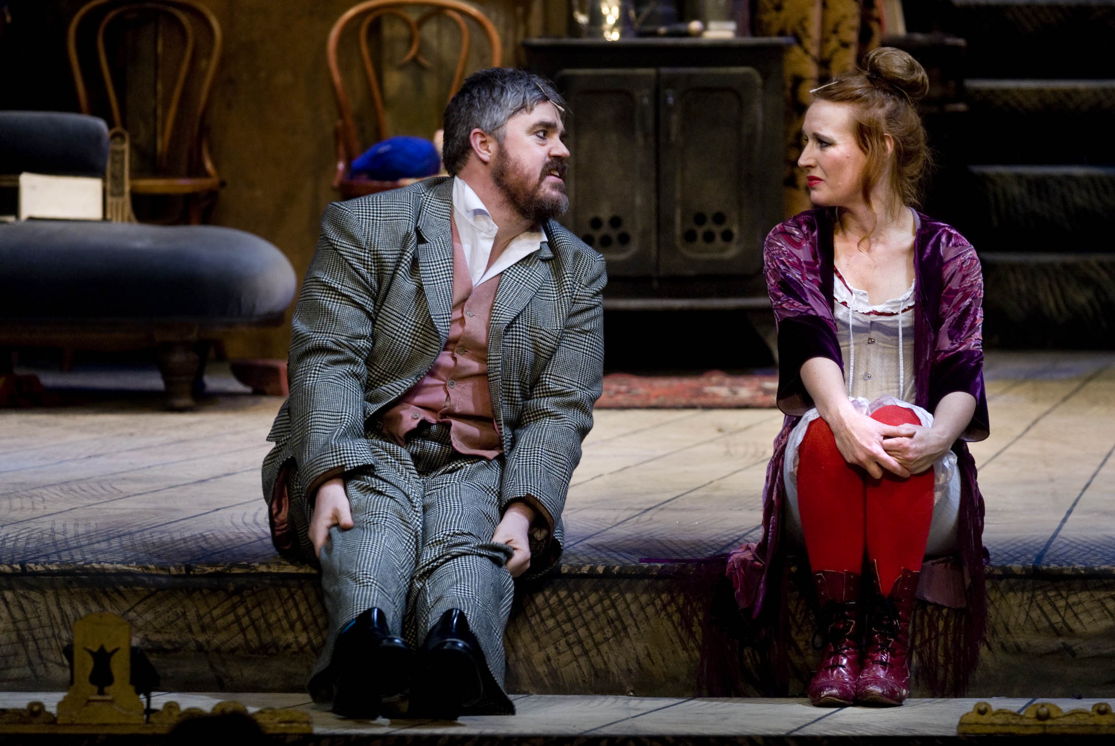 Jupitus is in his element as a frontman, never funnier than when he’s sparring with the pompous Nolan – watching two big blokes have a comic scrap will always be a pleasure to watch. None of the male leads impress as role models; the strongest character is suffragette Lisa Howard (pictured centre, above right), giving a talented turn as Eve the Escapologist. She confidently predicts that in the distant future, wars and riots won’t exist under Britain’s first female Prime Minister. Sweetest is Harry Hamer as Magic Barry, uncannily credible as a magician of little talent. Kyla Goodey’s naïve Beatrice (pictured below left, with Jupitus) spends the evening searching for life’s meaning, dabbling successively in Islam, Catholicism and Buddhism.