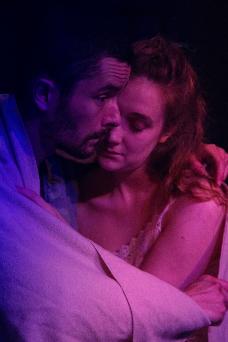 Lyuba wants to do things the “right” way, ie. marry Nikita and have children. The war has rendered everything meaningless except survival – maybe even that. Roche shows Lyuba’s desperate attempts to salvage a quiet married life from the rubble with a light touch. Nikita, meanwhile, both haunts and is haunted. A tramp (Jeremy Killick) follows him, gaunt and wordless. It’s implied that the tramp isn’t visible to anybody else, but Nikita is obsessed by him. He only seems fully present when he joins Lyuba in singing a traditional folk song. They dance and stamp and sing and look more alive than we’ve ever seen them. Their love story is briefly but tenderly sketched: they have a sweet "no, you hang up first" moment on a walk by the river. Nikita’s dad commemorates their wedding by making the happy couple the 1921 equivalent of a flat-pack wardrobe, assembled onstage by Morris.