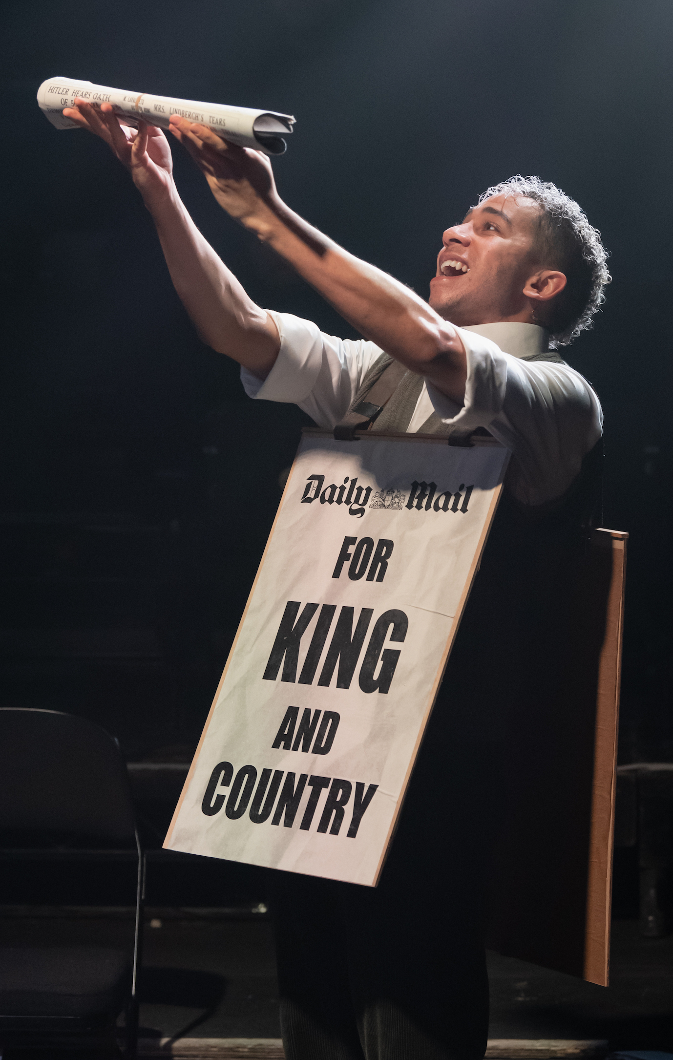 Sammy’s near-neighbour Ron Williams (Danny Colligan), a northerner whose mother Edie (Sophia Ragavelas) is a war widow slowly pickling in gin, is also finding work impossible to come by, but blames this on the Irish gangmasters, who only choose their own; in Jewish-owned workplaces he feels similarly spurned. His growing bitterness as a neglected native-born Englishman is a gift for the BUF recruiters, who indoctrinate him in the myth that rich Jews own the world and are responsible for all its ills. This fire is further stoked by a belligerent local police force, who are sent reinforcements by the government – to protect the BUF. Four newspaper sellers, from the Daily Mail to the Jewish Chronicle, add to the sense of complex warring forces, popping up to sell their papers’ differing editorial lines on the BUF’s activities. Peters (pictured right), in a voice dripping with bumptious English entitlement, makes the Mail seller especially repellent.
