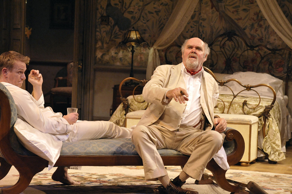 Things aren’t – or rather, ain’t – more pleasant anywhere else in the Pollitt household. On the 65th birthday of Big Daddy, played by a perfectly cast Richard Cordery (pictured below), the family gathers in Brick and Maggie’s bedroom to celebrate. However, unbeknown to the self-made patriarch or the adorably feeble Big Mama (Amanda Boxer), he’s dying of cancer, and his children and their partners are privately concerned with securing their share of his 28,000-acre plantation.