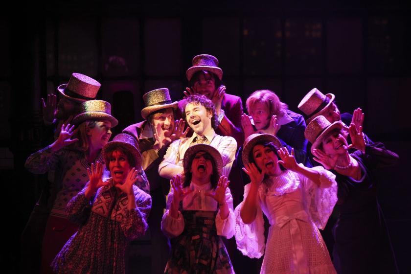 Company famously has no plot, substituting instead a prismatic view of relationships that both repels and draws Bobby onward to his 11th-hour reckoning. And more than I've ever encountered before, Munby and his designer, Christopher Oram, ram home the period of a show actually written at the tail-end of the 1960s, to the extent that the costumes often push the look of the piece towards satire, as if Company had devolved into some sort of musical version of Laugh-In, to cite the American comedy TV show of the era toward which George Furth's sketch-like book occasionally tilts.