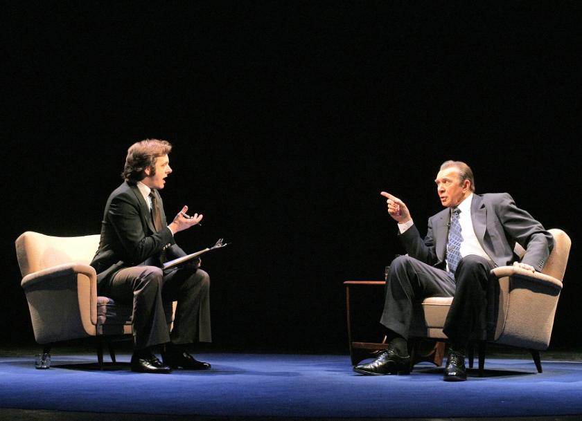 However, when the play gets to the meat, Morgan scrupulously portrays Frost’s brilliant interview technique and Nixon’s remarkable capitulation. It’s an electrifying encounter, and it’s electrifying to hear Frost, and perhaps not quite the all-action interviewer superhero he was 30 years earlier, retell it in his book-lined office.