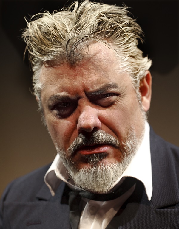 The story of GOSET instantly deals with the preconceptions of Yiddish as a poor relation in the family of languages and cultures: Eugene O’Neill and Max Reinhardt admired the company, Chagall designed for them, Shostakovich picked out their leading actor, Solomon Mikhoels, as the greatest King Lear he’d ever seen. It’s this that I wanted to celebrate in my play. I love that the poster has the “Blow winds and crack your cheeks” speech in the original Yiddish text, the original Yiddish font even, the one the actors would have held in their hands. I love it that a poem by the Yiddish poet Peretz Markish, which has probably not been read aloud for 60 years, is given such a wonderful airing by Darrell D’Silva (pictured below) who plays Mikhoels (and objectively, and I can of course be objective about my own play, his is a quite remarkable performance). I love sitting at the back of the auditorium and watching the audience learn the remarkable story of this now forgotten culture (not that I’m there every night, you understand. After all, there are Twitter followers to be counted etc).