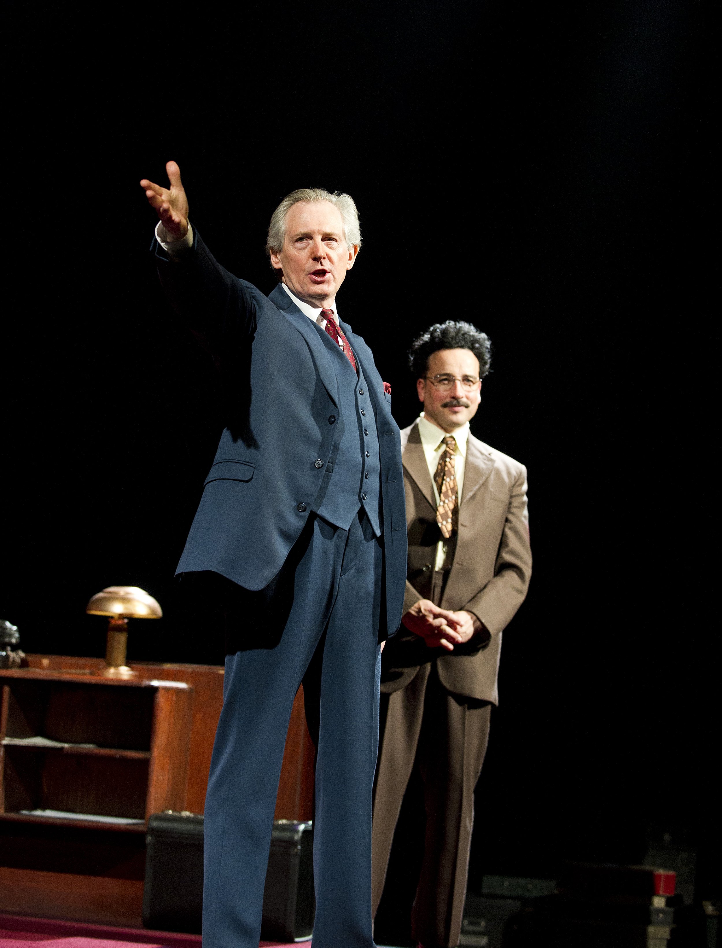Democracy, by the way, has no female characters - other than a brief voice-off - though the presence of women is everywhere palpable. But it's certainly not a two-hander. Among the sharply-etched, gossiping and back-stabbing mandarins around Brandt are David Mallinson as a dyspectic and envious Helmut Schmidt, Chancellor-in-waiting, William Hoyland as the avuncular, pipe-smoking, devious Herbert Wehner and Richard Hope as a bungling head of security.