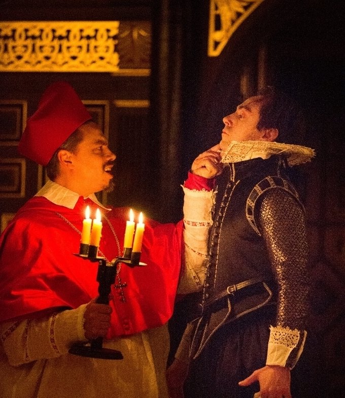 While the rest of Wanamaker’s opening season gets more experimental and exploratory, the new theatre was launched last night with a classic Jacobean revenge tragedy (and the closest the period gets to a big hit) – John Webster’s The Duchess of Malfi. It’s a work that cuts deeper into the psychology of its victims than earlier favourites such as The Spanish Tragedy or The Revenger’s Tragedy, and much closer in spirit to the Shakespeare that Globe audiences are used to.