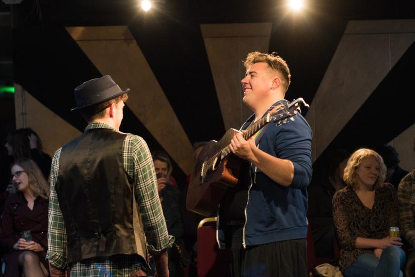 Written by Alexander Wright (ex-Belt Up Theatre) and with heart-melting songs from Phil Grainger, Orpheus is a tender two-hander with its heart very much on its sleeve, using just a narrator (often Wright himself, but here an engaging Tom Figgins), Grainger on acoustic guitar and vocals, and – they joke – a single lighting cue.