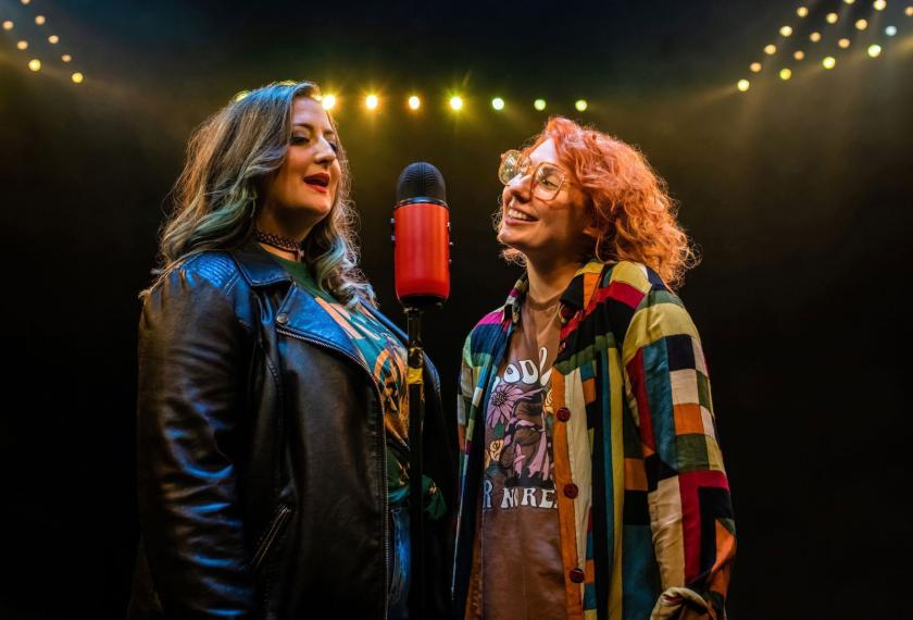 What a pleasure to be in the audience for this terrific musical whodunnit, about best friends Kathy (Bronté Barbé ) and Stella (Rebekah Hinds), who live in Hull and have a podcast devoted to “in-depth chat about murders”, the grislier the better. So when their heroine, crime writer Felicia Taylor (Jodie Jacobs) is decapitated shortly after they meet her, they set about finding her murderer.