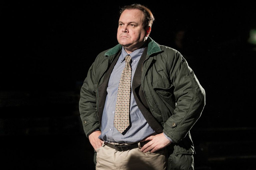 On seeing the stage version, one realizes that Willimon’s plot twists are as baroque as those of Jacobean revenge dramas. And some are crafty. The dialogue, by comparison, seems bald. Perhaps this impression is exacerbated by the relative paucity and stasis of Unsworth’s settings, the drama being played out on a slightly drab, low-budget set with office lighting overhead, a grey chequered carpet and chair-bound meetings (the set design is by David Woodhead).