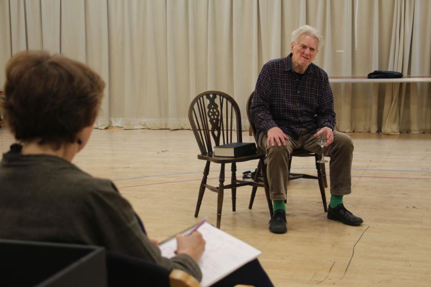 I did, however, undergo six weeks of radiotherapy and this, while hopefully ensuring no recurrence of the disease, did damage my tongue, making speech and eating (rather important to me) even trickier than it might otherwise have been. Words like "grief" and "grave" were especially difficult. Although my home is in London, I was at the time living in Devon. In 2017 Clarissa Brown and I re-met and, much water having flowed under the bridge, we began a relationship that resulted in our happily spending lockdown together at her home on the river Exe. During that time Richard and I emailed only occasionally – there didn't seem much to report – but I eventually told him about the surgery and later the three of us met on Zoom. He says it was seeing my altered appearance and hearing my altered voice that made him think of offering to write me a play. He also wanted to write it with Clarissa in mind as its director.
