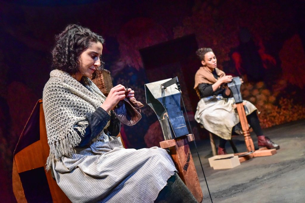 It’s 1903 in the Levels, a low-lying, boggy part of south Somerset, where Louie and her sister Lucy (Sasha Frost, pictured above with Haque) are glovers, working by candlelight from their crude, uncarpeted home; nearby is a new glove-making factory that threatens to put them both in the poorhouse. So Louie reluctantly becomes a maid at the vicarage to supplement their income, and there she meets a visiting teacher and music researcher, Cecil Sharp (Simon Robson), who is immediately intent on setting down her songs.