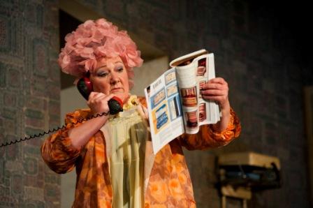 The themes of The Guid Sisters – economic desperation, the politics of language, religion, the complexity of female relationships – remain universal, and its sheer zest and vibrancy is undimmed. At its centre is Germaine Lauzon (Kathryn Howden, pictured below right), who in these pre-Lottery days has won a windfall of a million Green Shield stamps. These will enable her to order the entire catalogue and transform not only her house – she wants “every-bloody-thing”: a colonial style bedroom suite, artificial nylon carpet, the works – but her life. In order to claim the prizes she first has to stick all the stamps into their books, a Herculean task for which she enlists the help of her two sisters, sundry friends and neighbours.