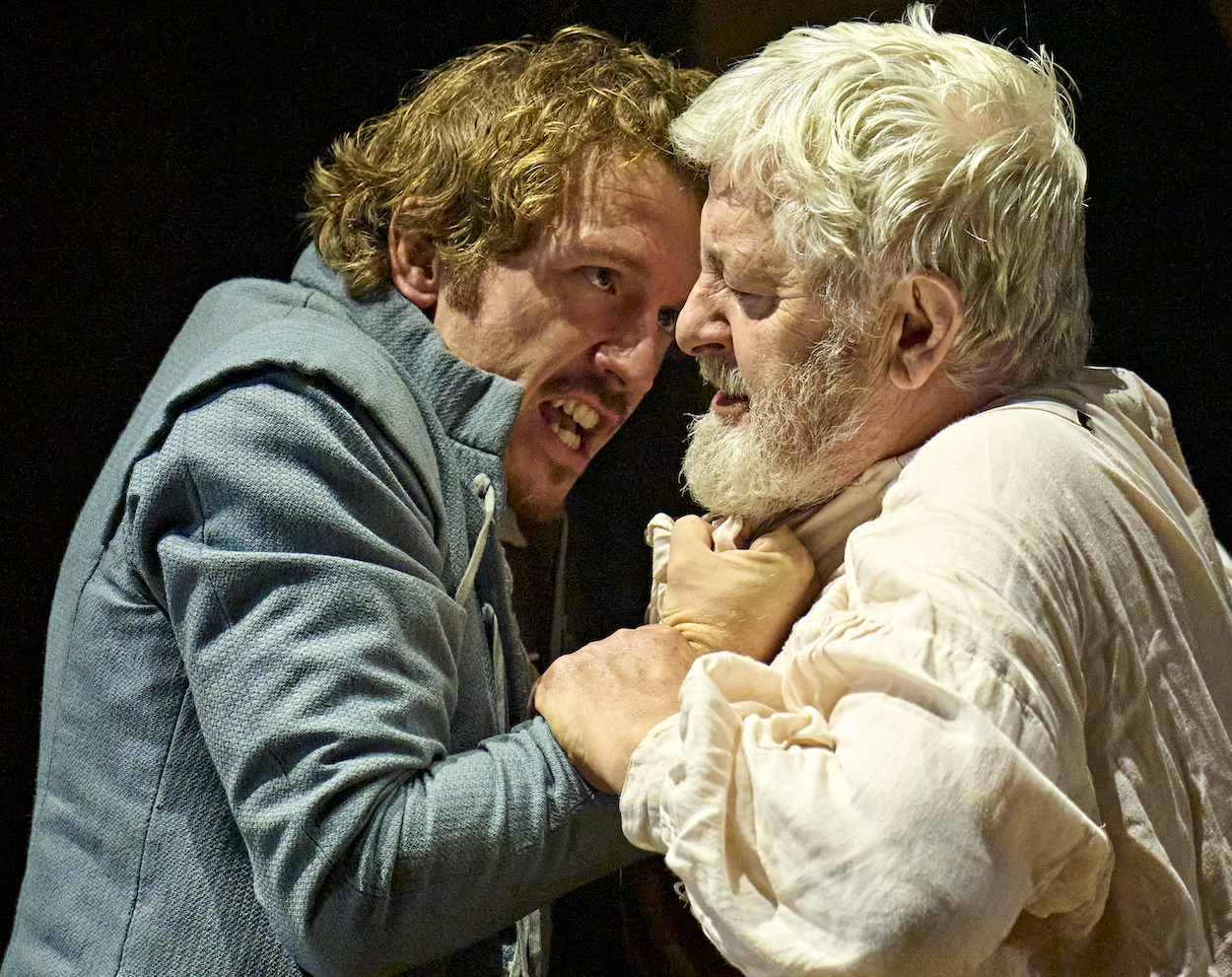 In the supporting cast, Liza Sadovoy (an Olivier winner for Cabaret) brings some snap and crackle to the tone as shrewish Mary Shakespeare; and Peter Wight (pictured below, right, with Tom Varey), who doubles as her brutal drunkard husband and the actor Will Kempe, also turns in a solid performance. But there’s not a lot for the cast to do other than sweep along the action. The episodic structure of the play truncates each scene before it can build up a head of dramatic steam, so it becomes an oddly breezy run-through of a woman’s increasing estrangement from her husband, and his parallel rise as a playwright, until their shared grief unites them again.