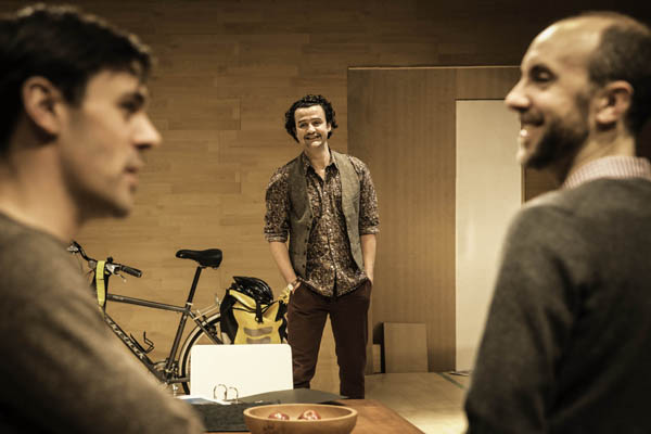 Jeremy Herrin’s atmospheric and empathetic production makes good use of designer Mike Britton’s set, which suggests a school hall as well as a cool flat, and the doomy music is a plus. His cast (pictured above right) is uniformly excellent. As Jamie, Danny Mays is a dynamic stage presence, an actor who can make a quick tap on a cyclist’s helmet seem charmingly humorous. When he gets angry, he radiates danger. Equally compelling is Liam Garrigan’s Danny, a personality who glows with a quiet charisma. With Tim Steed more grounded as the pragmatic Joe and Susannah Wise perfect as the slightly underwritten Lisa, this four-hander is always watchable and becomes increasingly compelling. Discretion might be the best policy, but open courage makes for great drama.