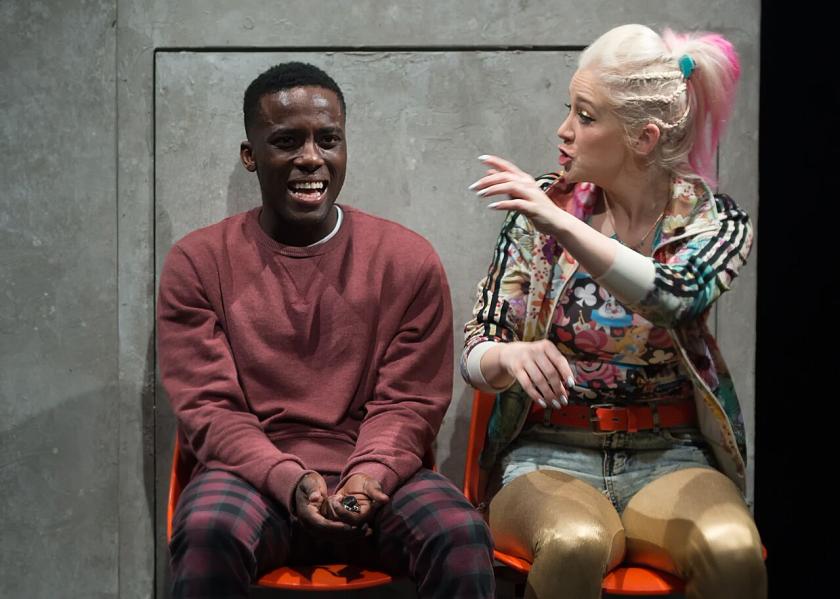 The situation on view in I See You is rife with provocation and comes, the playtext informs us, from a real encounter. Following a chance encounter in a club that leads to them driving off together, black law student Ben (Bayo Gbadamosi) and fellow teenager Skinn (Jordan Baker) are pulled over for drunk driving, an infraction that the confident Skinn thinks she can talk their way out of, persuasiveness ranking high amongst her apparent powers.