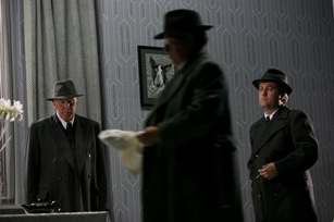 While singing, the men also act, quietly, neatly, throughout: dismantling a room and putting it back together again in the first part (to Eliot’s “The Love Song of J Alfred Prufrock”); occupying and performing domestic chores in a house in the second (to Blanchot’s The Madness of the Day); watching old holiday footage in a hotel room in the third (to Beckett’s Worstward Ho). It rather resembles a medieval triptych, with the delicacy and detail that come with such a votive artefact, though Goebbels's work, if often spiritual, is never formulaic or preachy.