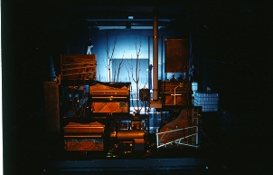 In non-musical quarters, he’s called a theatre director. It’s a fair attempt at a description but too categorical. Goebbels creates musical pictures for the stage, some of them with no human presence. Stifters Dinge (pictured right), from three years ago, was an assemblage of pianos and wires and projections, and a recorded voice, which travelled over pools of water in what, wherever it guested, was a theatre setting; but the 80-minute show was more kinetic art, a beguiling installation, than it was true drama.