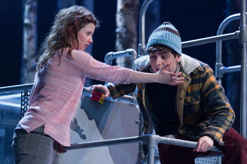 Best of all is the contribution that music and movement make to the experience of watching the show. Frantic Assembly’s Steven Hoggett adds balletic dance moves while Ólafur Arnalds’s music, familiar from Broadchurch, punctuates the action. Rebecca Benson’s Eli has a magnetic stage presence, with her unearthly voice, while Martin Quinn’s Oskar is touchingly vulnerable. Similarly, Ewan Stewart’s sinister Hakan contrasts with Susan Vidler’s Mum. Graeme Dalling as the bully Jonny (pictured above right with Oskar) leads the supporting actors. With its excellent special effects and direct emotional intensity, this is a dazzling and dramatic hit.